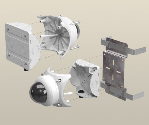 - Удобная поэтапная установка: сначала монтаж корпуса к стене, затем камеры к крышке и окончательная сборка.