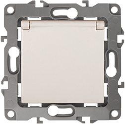 Розетка одноместная 12-2103-02 "Эра 12" (16 А, 250 В, IP20) с заземлением и защитными шторками, с крышкой, слоновая кость