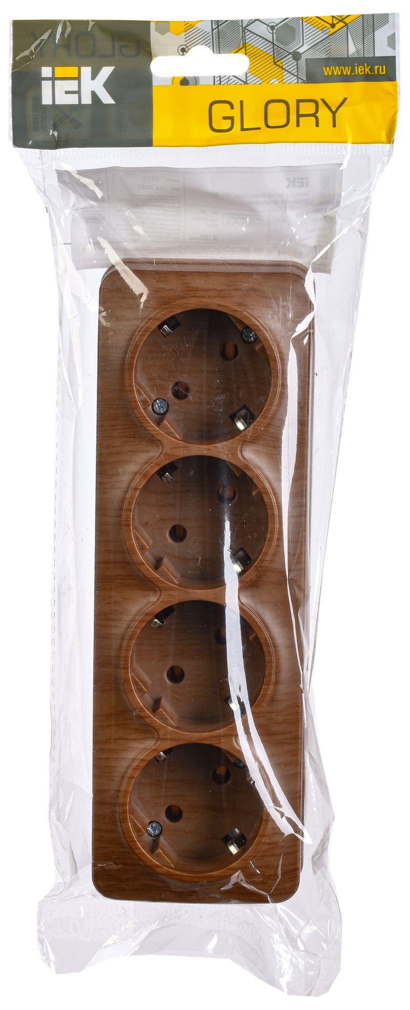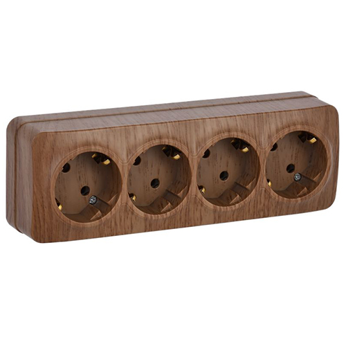 Розетка четырехместная IEK РС24-3-ХД Glory (16 А, IP20) открытой установки, с заземлением, дуб