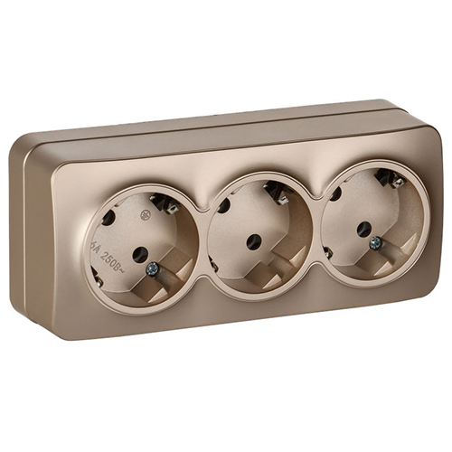 Розетка трехместная IEK РС23-3-ХШм Glory (16 А, IP20) открытой установки, с заземлением, шампань матовый