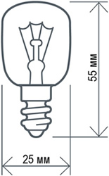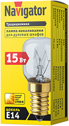 Специальная лампа накаливания Navigator NI-T25 предназначена для установки в духовые шкафы, устойчива к высоким температурам.