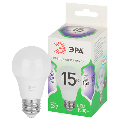 Лампа светодиодная Green Line LED A60-15W-865-E27 GL "Эра" (А60 груша, 15 Вт, 1500 лм, 6500 К)
