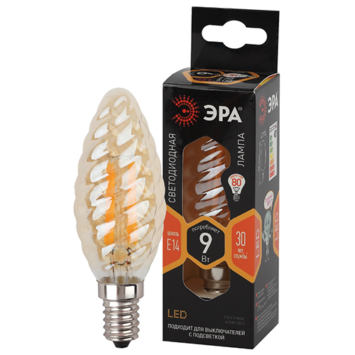 Лампа светодиодная F-LED BTW-9W-827-E14 Gold "Эра" (витая свеча, Е14, 9 Вт, 770 лм, 2700 К, золотистая колба)