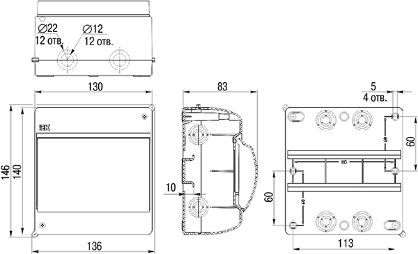 | Диаметр отверстий под кабель, мм | 12 / 21 |